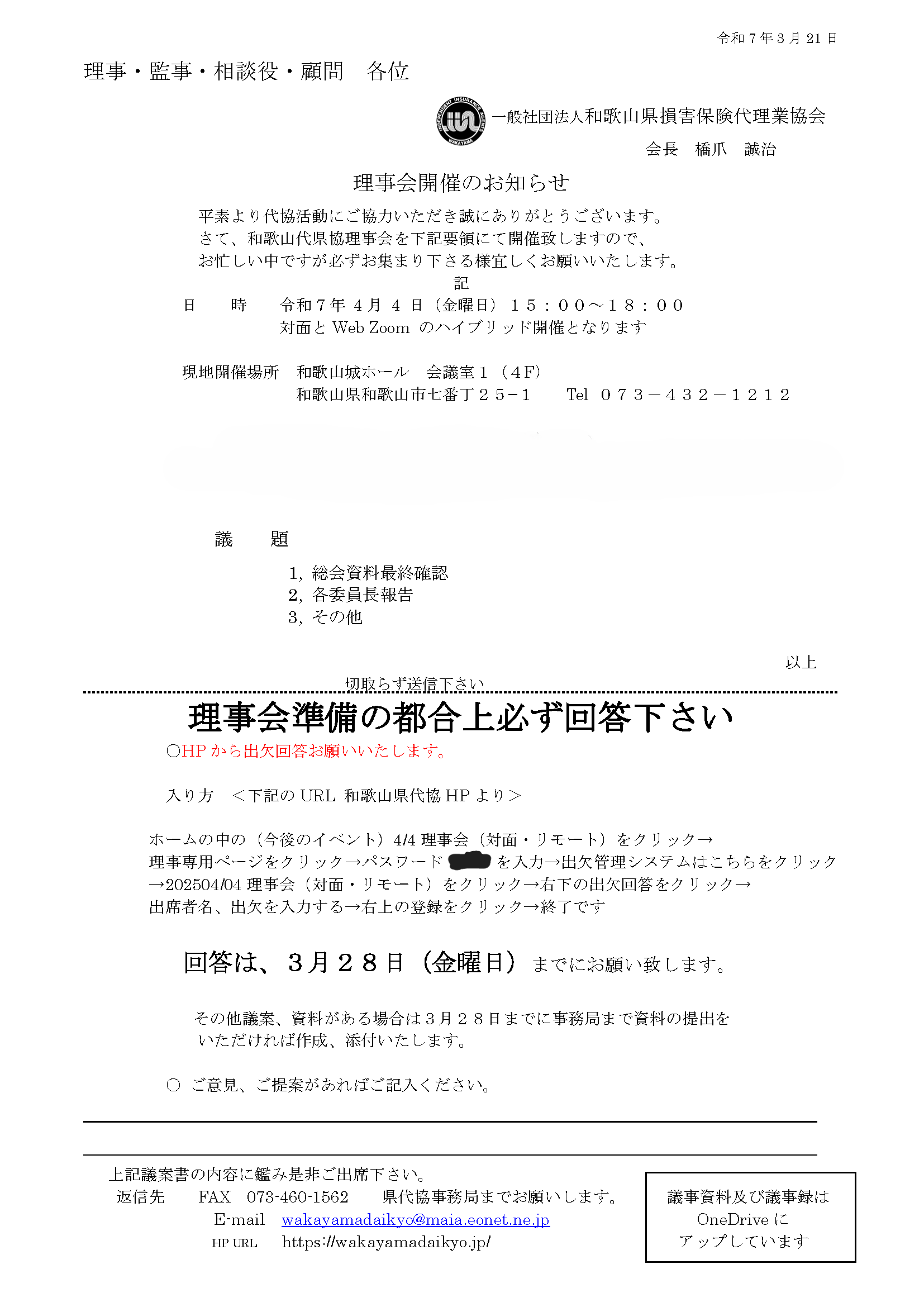 出欠アプリへのログインはこちら https://wakayamadaikyo.jp/membership/riji-only